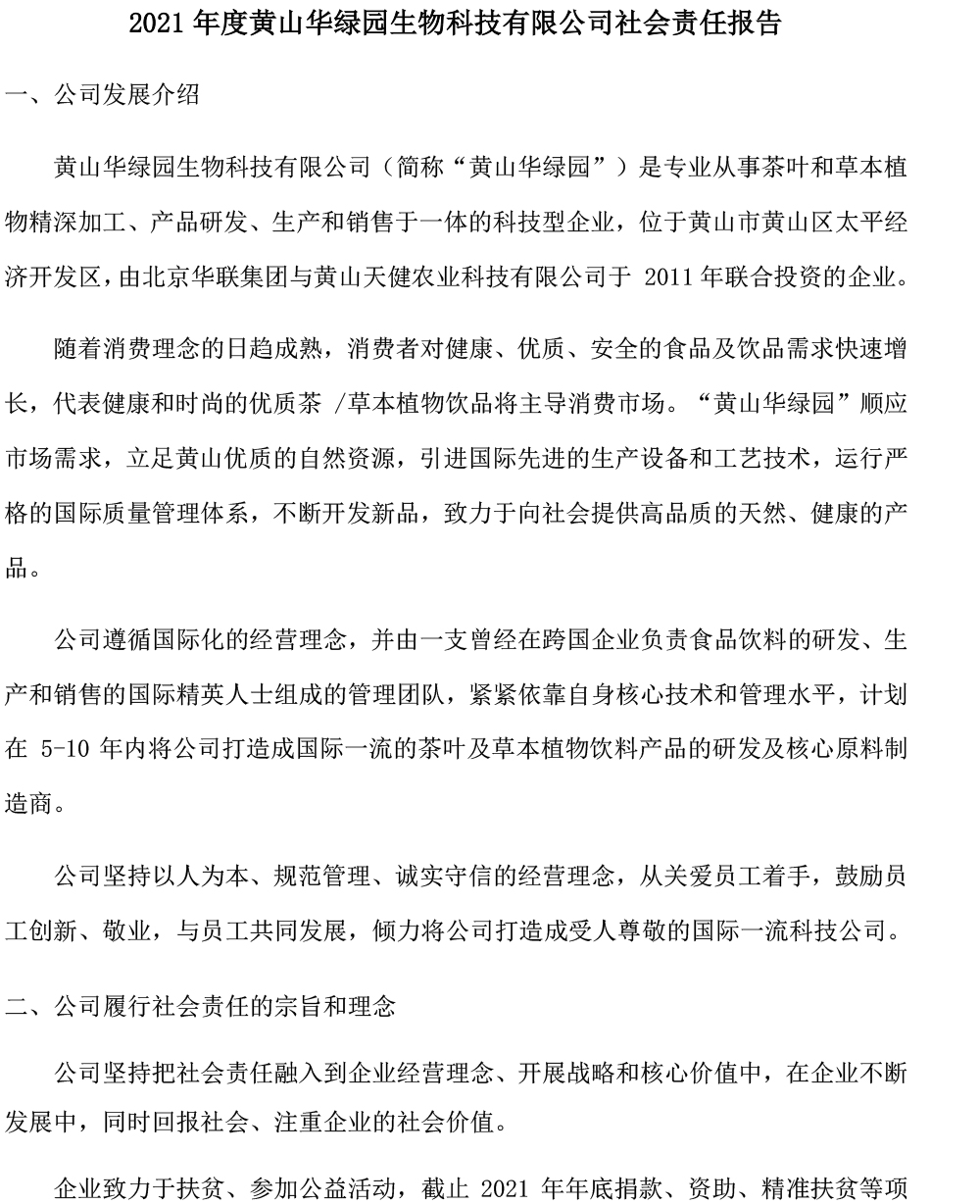 2021年度黃山華綠園生物科技有限公司社會責任報告